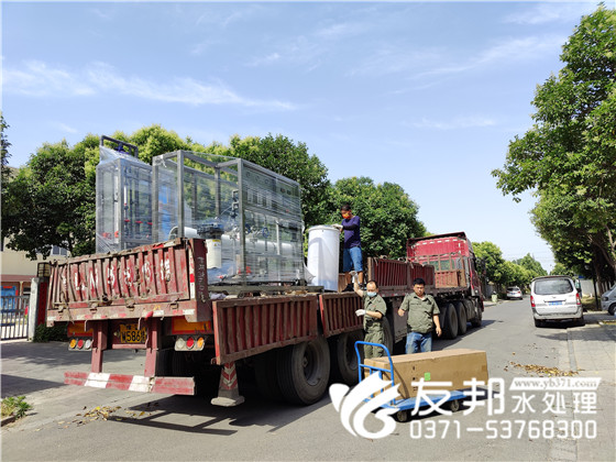 雨過天晴,天氣格外晴朗,空氣更加清新。即將裝車發貨的是一套2噸單級純凈水設備和超濾水處理設備。