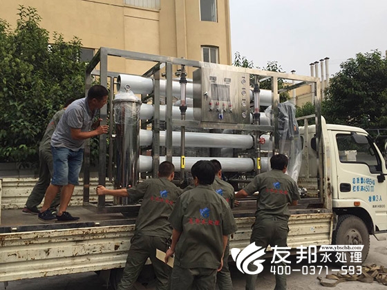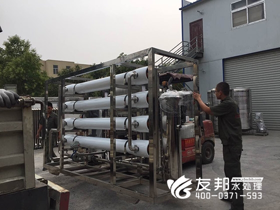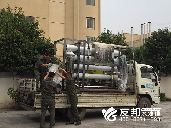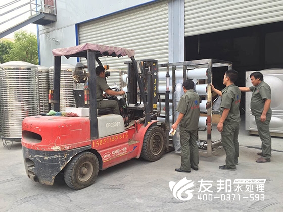 這套型號為YB-CJS-008的水處理設備正在裝車發貨,是發往新鄉某新材料有限公司。河南友邦在此次合作中為新鄉某新材料有限公司提供提供的8T/H純水系統,完美的解決了對方在生產工藝用水方面的需求,成功幫助對方實現了新材料的生產。