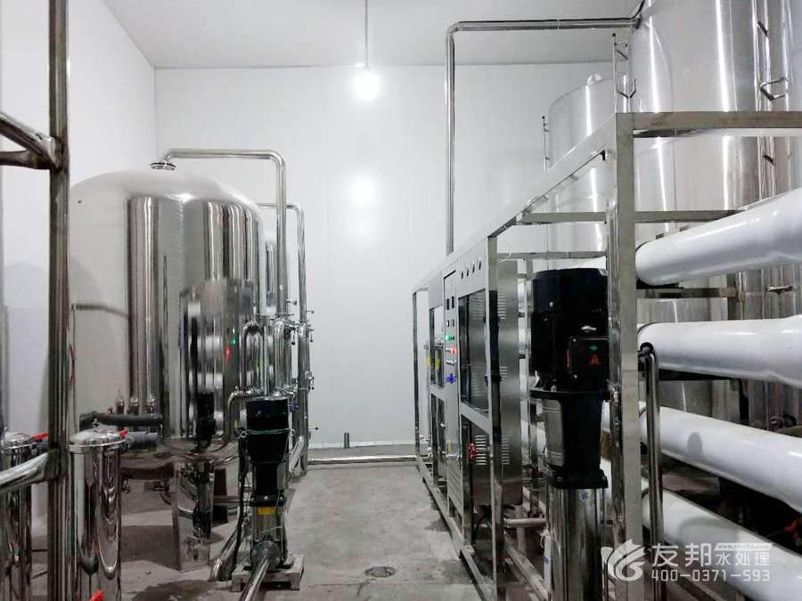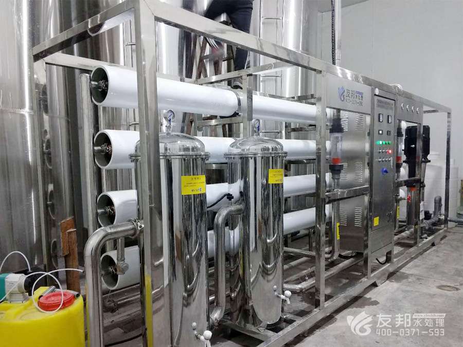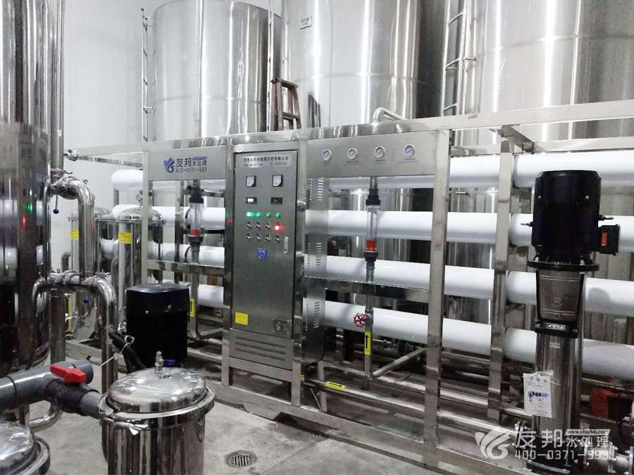 箱→低壓泵→精密過濾器→一級反滲透主機→PH調節→混合器→二級反滲透主機(反滲透膜表面帶正電荷)→