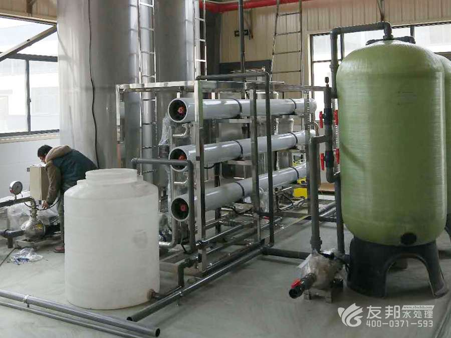 為滿足用戶需要,達到符合標準的水質,盡可能地減少各級的污染,延長設備的使用壽命、降低操作人員的維護工作量.在工藝設計上,取達自來水標準的水為源水,再設有介質過濾器,活性碳過濾器,鈉離子軟化器、精密過濾器等預處理系統、RO反滲透主機系統、離子交換混床(EDI電除鹽系統)系統等。 系統中水箱均設有液位控制系統、水泵均設有壓力保護裝置、在線水質檢測控制儀表、電氣采用PLC可編程控制器,真正做到了無人職守,同時在工藝選材上采用推薦和客戶要求相統一的方法,使設備與其它同類產品相比較,具有更高的性價比和設備可靠性。