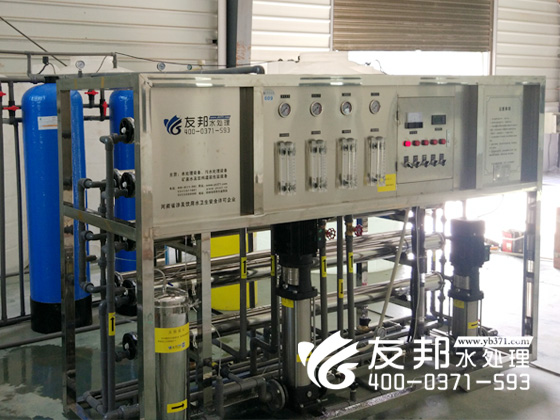 河南友邦根據黃河旋風當地的原水情況和公司對出水水質的嚴格要求生產出這套型號為YB-CJS-001的純凈水設備