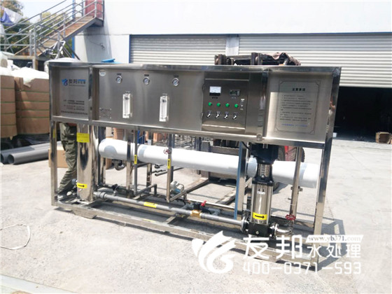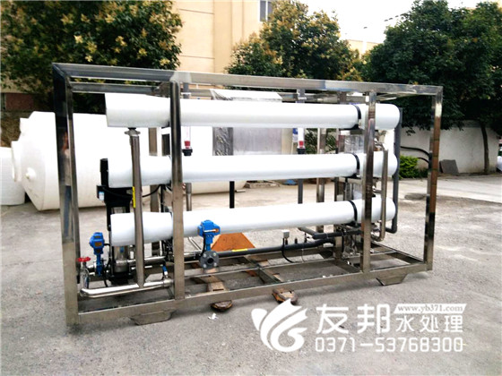 這套河南友邦生產5噸純凈水制取裝置由預處理、反滲透技術及精
