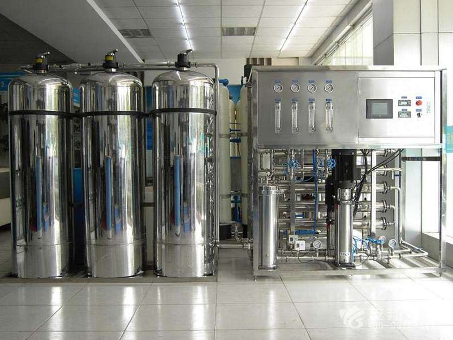 1.原水→原水增壓泵→多介質過濾器→活性炭過濾器→軟水器→精密過濾器→反滲透系統→中間水箱→中間水泵→離子交換器→純化水箱→純水泵→殺菌消毒→微孔過濾器→用水點